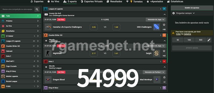 O 54999 oferece uma grande seleção de opções de apostas em e-sports com probabilidades competitivas